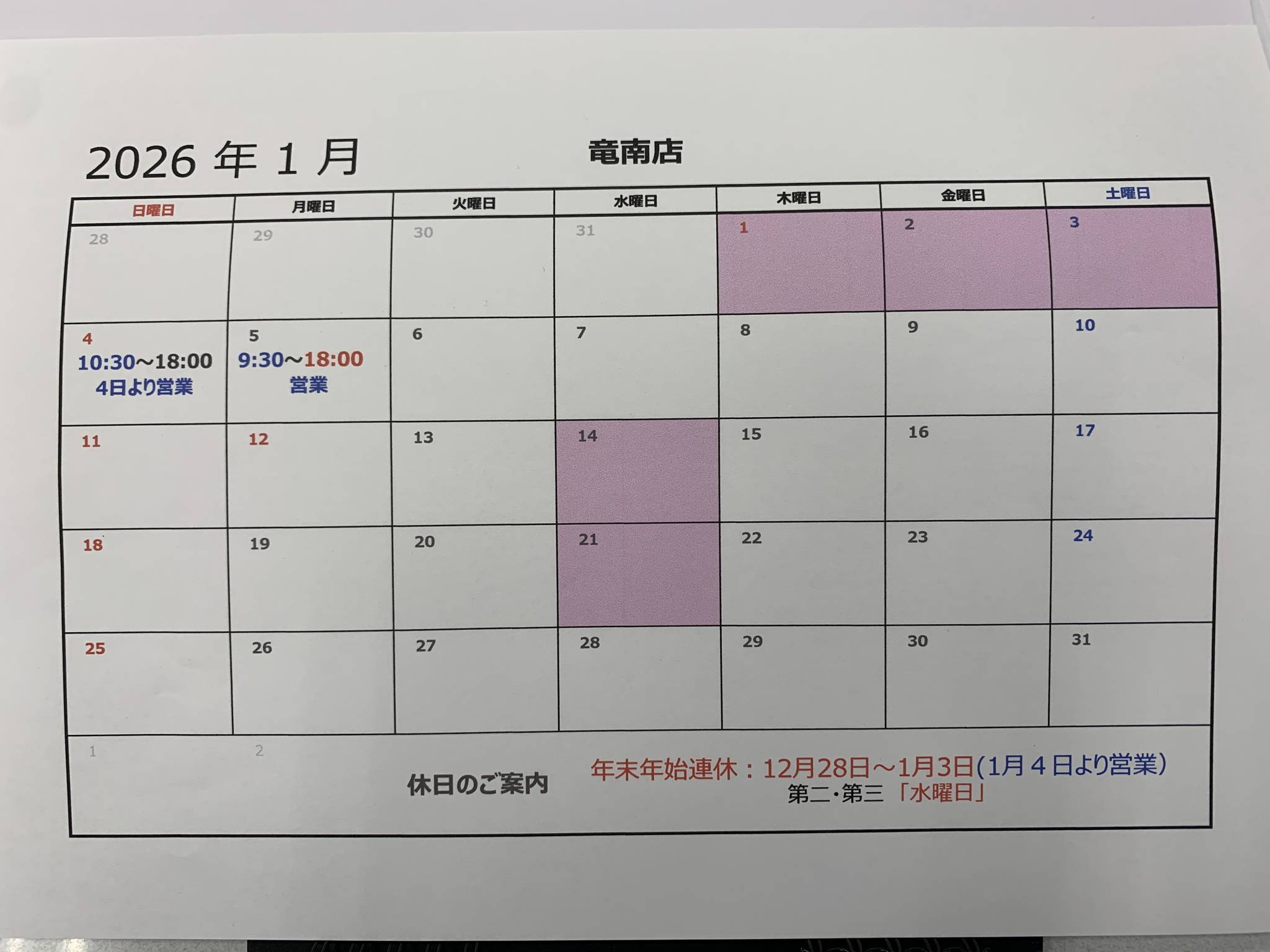 1月4日(日)営業/10:30~18:00
